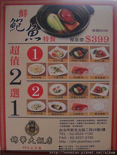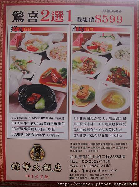雙人價只要398元可享【錦華大飯店】原價1254元共10道好食雙人套餐: