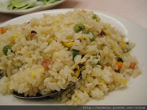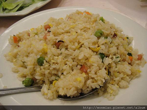 米飯炒得粒粒分明, 只用了簡單的冷凍三色蔬菜, 但口味不錯, 算是好吃的炒飯,