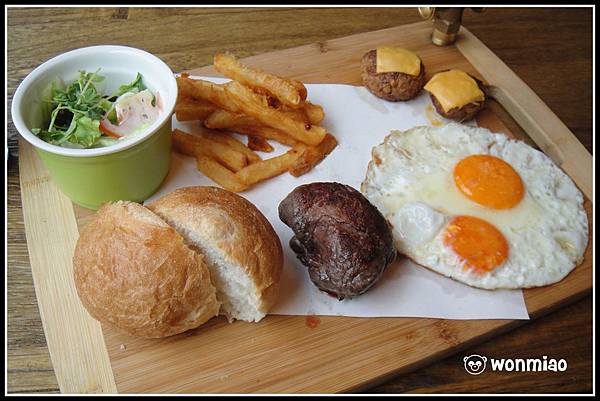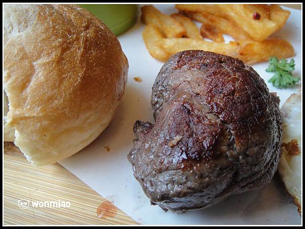 加了蠻多香料下去提味的漢堡肉, 友人則覺得反而搶了牛排的戲