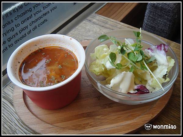 醬料是屬比較健康取向的甜優格醬, 當天的湯品為羅宋湯, 表現中規中矩, 好喝!