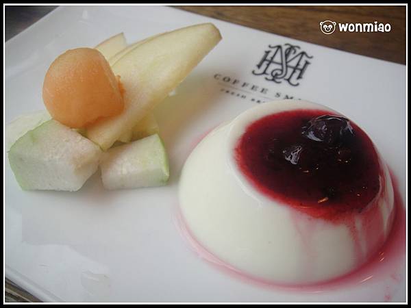 淋了黑醋栗果漿的奶酪香甜好吃, 水果也很新鮮!