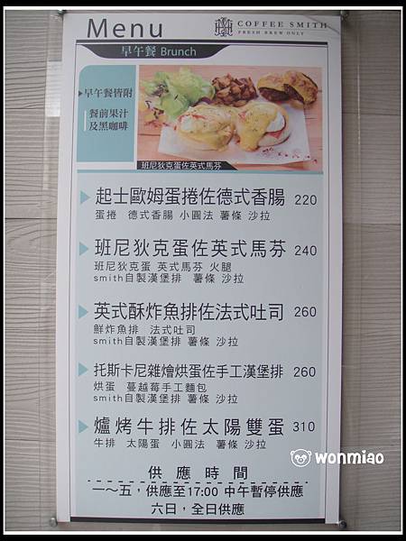 | 早午餐系列餐點皆附果汁及黑咖啡 | |||