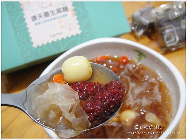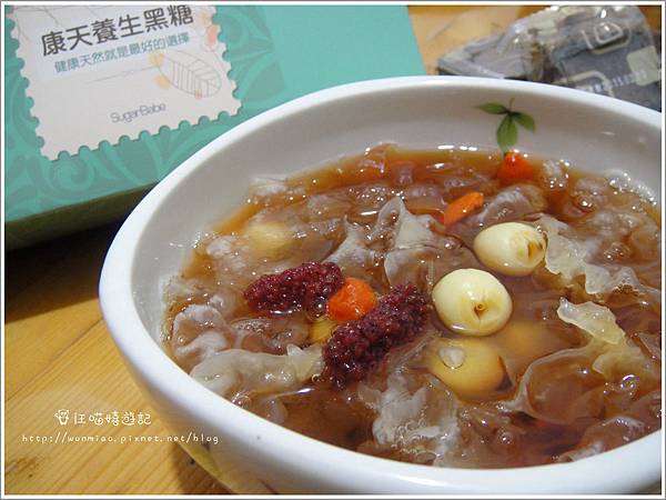 白木耳蓮子本身没什麼味道, 使用紫蘇桑椹寒天黑糖來提味剛好,