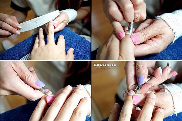 挑好顏色後,美甲師開始做基礎的指甲清潔,抛光...,