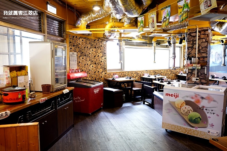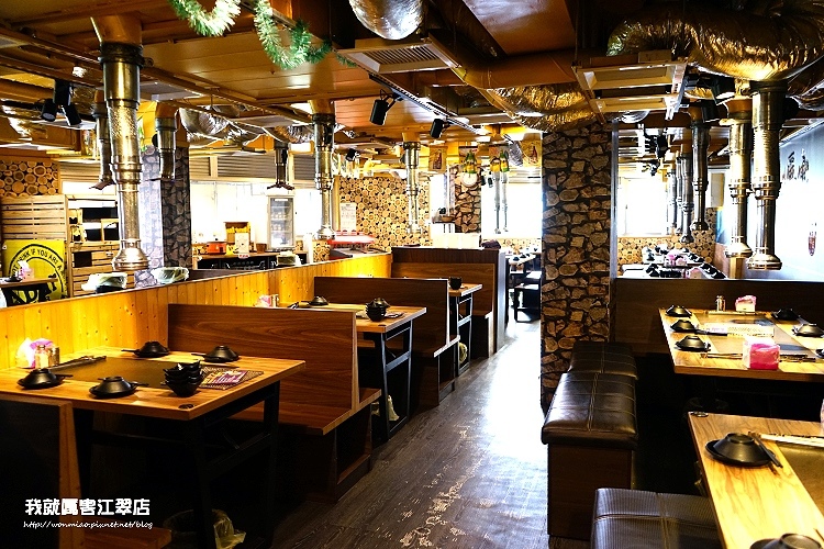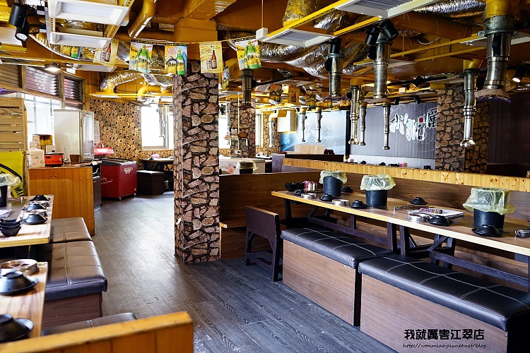 我就厲害江子翠店就燒肉店來說還算大間,每個座位上方都可以看到自天花板延伸下來的吸煙管,