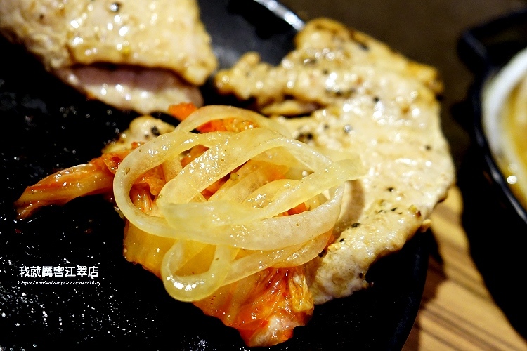 豬排口感也是偏有彈性及嚼勁一些,將肉捲上一點泡菜及洋蔥絲便十分美味!