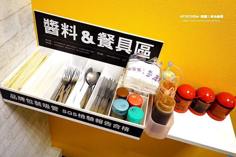 角落裡有提供醬料及餐具的自助區,乾淨又整齊!