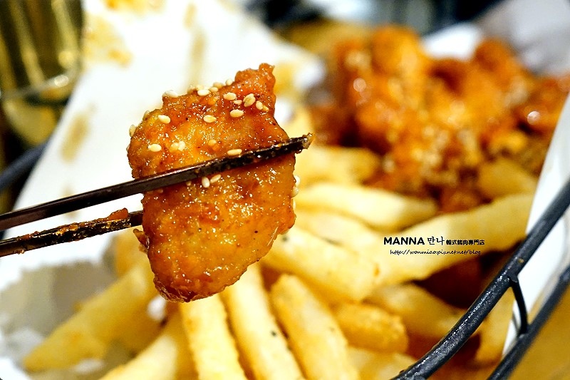 雞肉炸得剛剛好,皮脆肉嫰,拌上韓式甜辣醬,