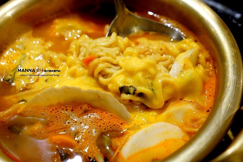 煮滾後還加入一片香濃起司,韓國人真的很會創造邪惡美食滴啦~~~