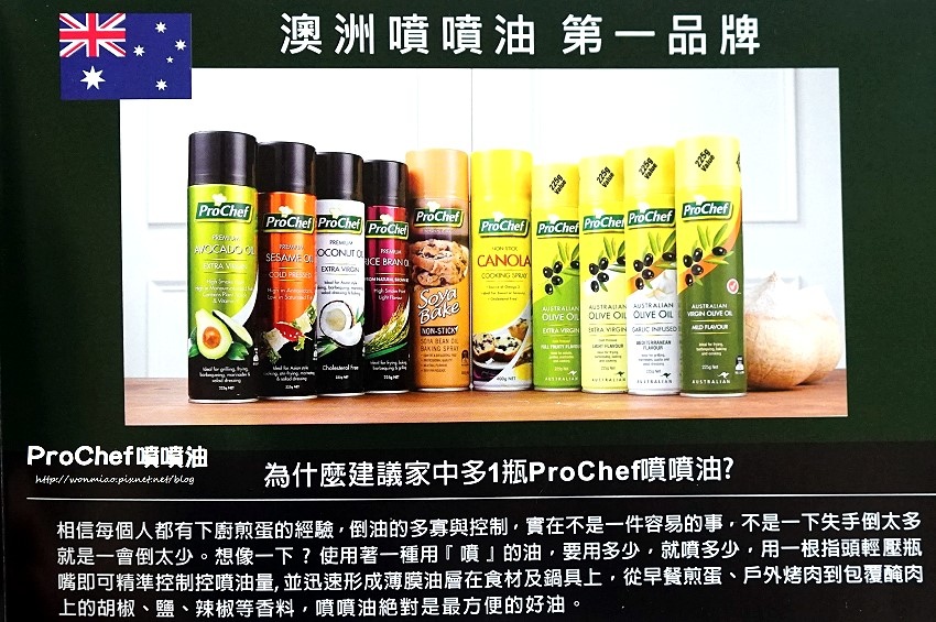 來自澳洲原裝進口的ProChef噴噴油為高發煙點油品,讓人可以安心使用!