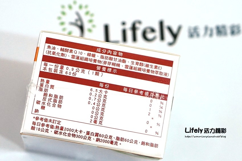最近吃的這款Lifely活力精彩含有來自雪蓮組織培養萃取液,Q10,維生素E及深海魚油,