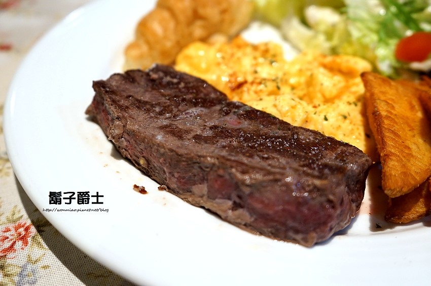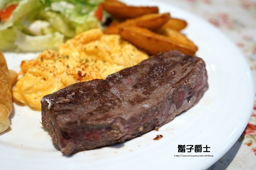大約有一個手掌大,整塊牛排相當厚實有份量!