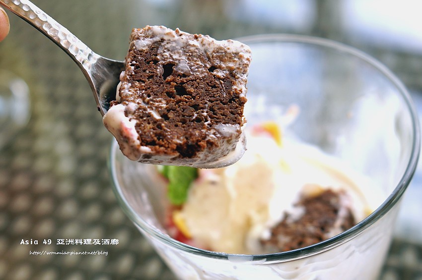 香草冰淇淋下為自製的薄荷鳳梨凍,