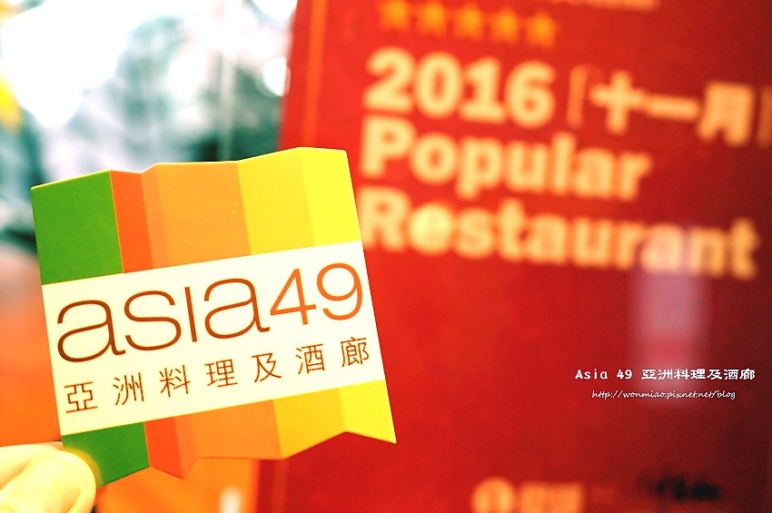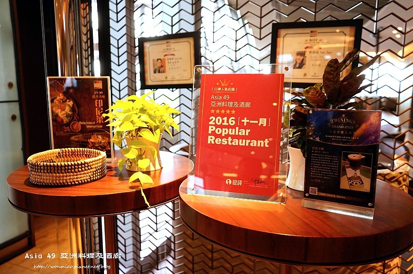 一出電梯口,可以看到Asia 49 亞洲料理及酒廊為2016年11月愛評口碑人氣店舖的紅色立牌。