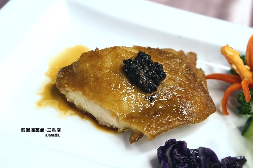 魚肉上鮮紅的彭園獨家醃製辣椒,既香又辣,
