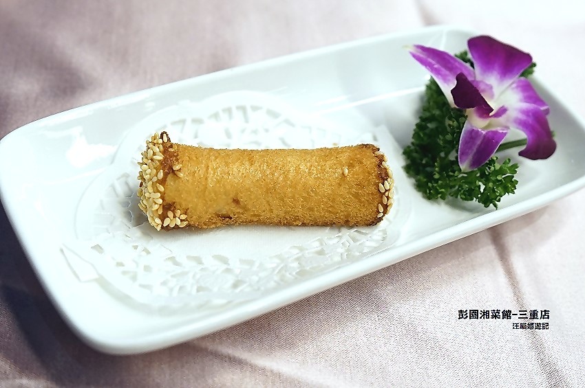 以吐司捲入芋泥,兩側以養生白芝麻封口下鍋油炸做出的甜點。