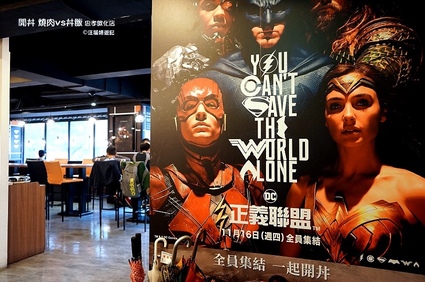 汪喵要先入內開丼,吃飽飽才有力氣跟著蝙蝠俠,神力女超人,