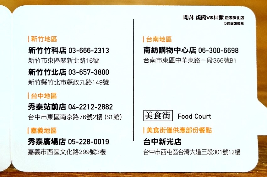 餐後別忘了填上帳單後方的問券,還可領取開丼好禮一份哦!