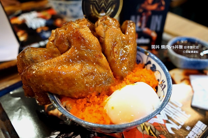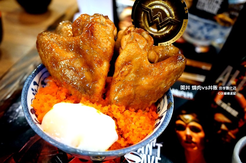 神力女超人搭的是半熟的溫泉蛋,白飯上舖的則是橘紅色的魚卵,