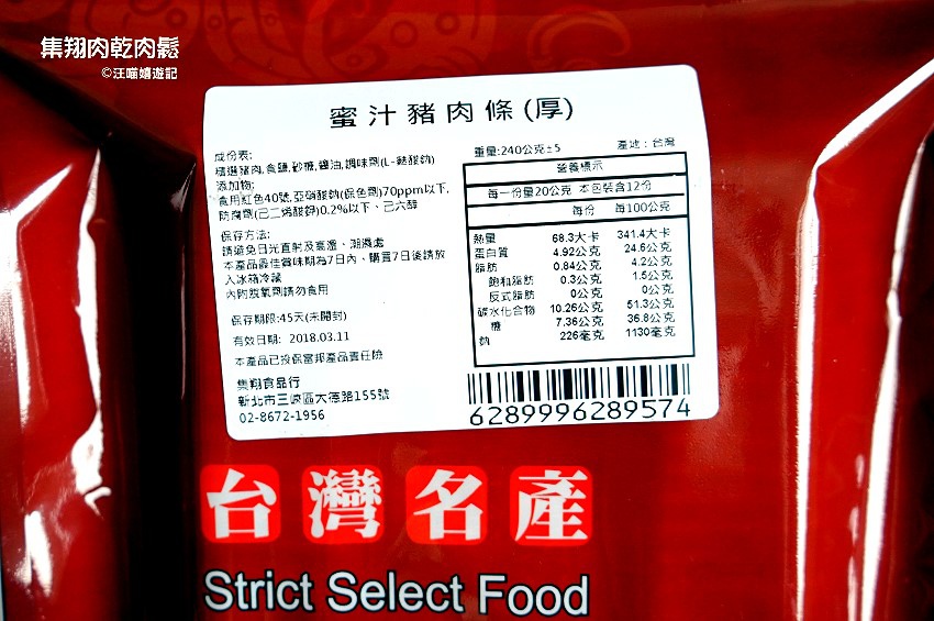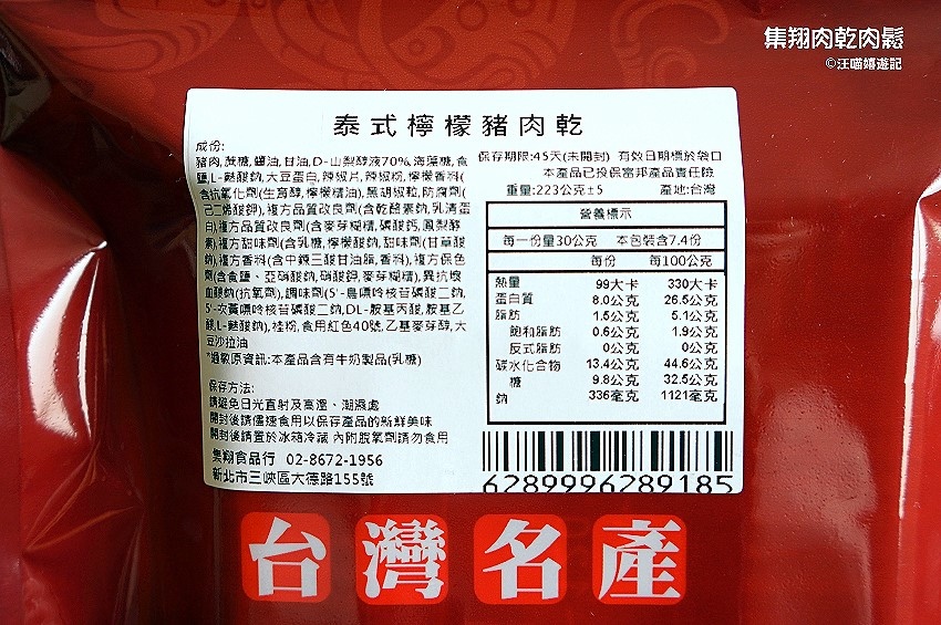 集翔肉乾除了個人最愛的經典口味蜜汁外,也有現代人喜歡的泰式檸檬,