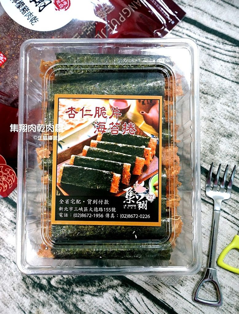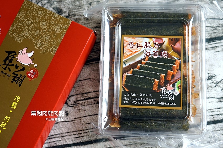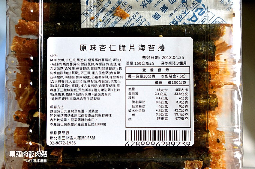 除了肉乾外,集翔肉乾也有做杏仁脆片海苔捲,也是這幾年蠻夯的下午茶零嘴,