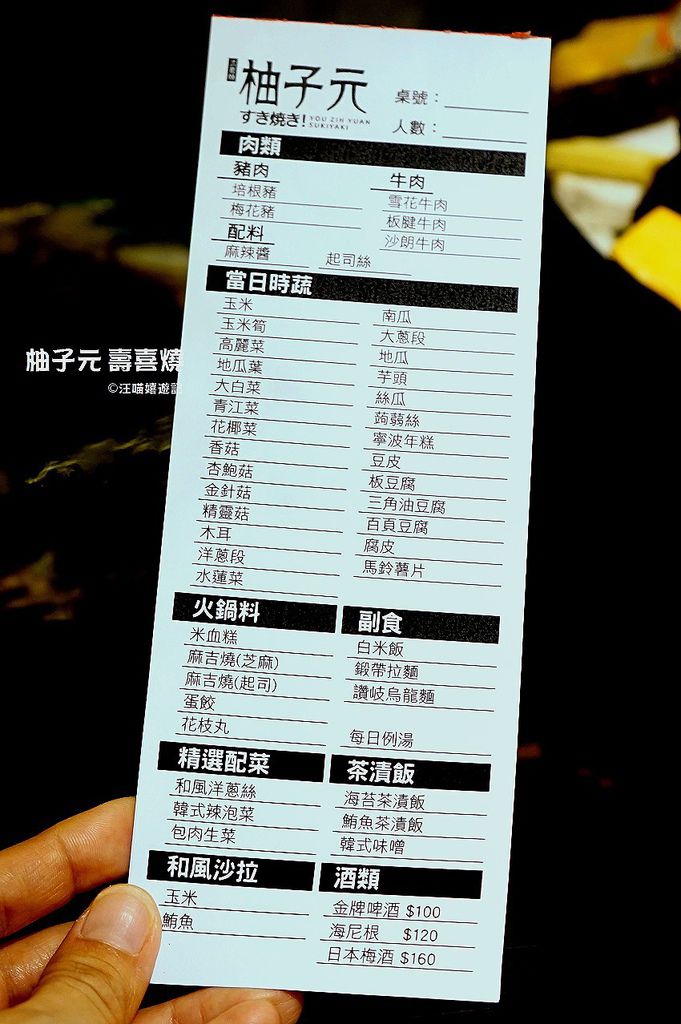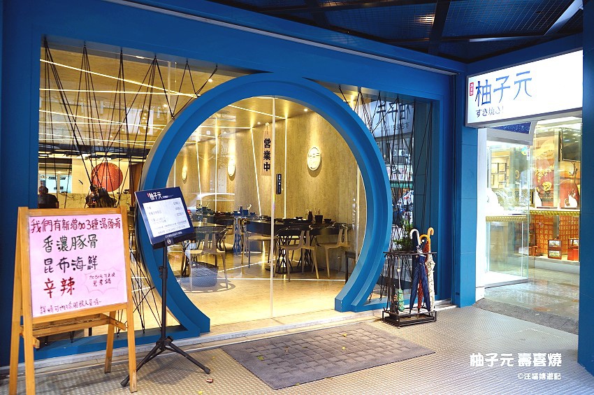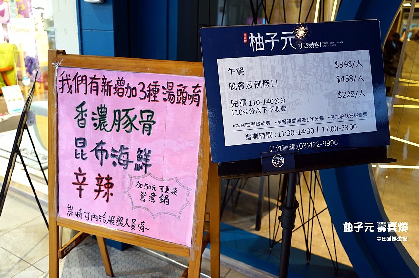 店門口清楚標示店內的消費方式,柚子元除了一般的壽喜燒湯底外,