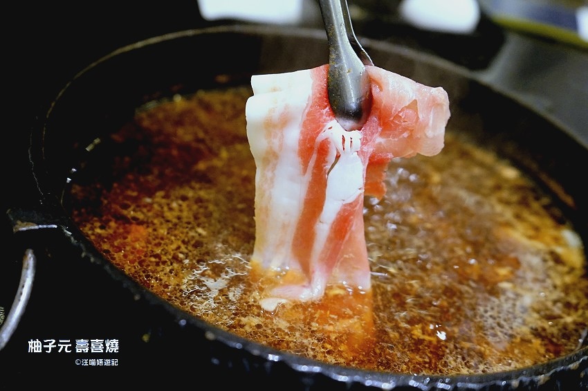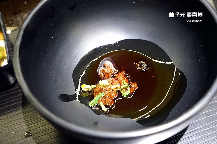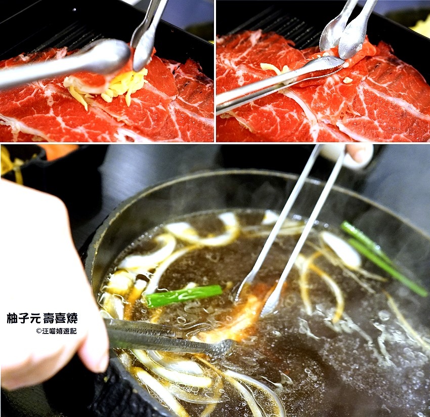 柚子元的壽喜燒跟石頭火鍋一樣,會在客人面前爆香洋蔥跟蔥段,