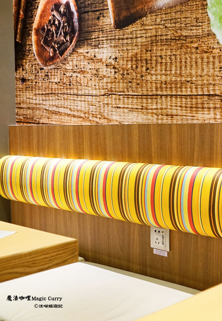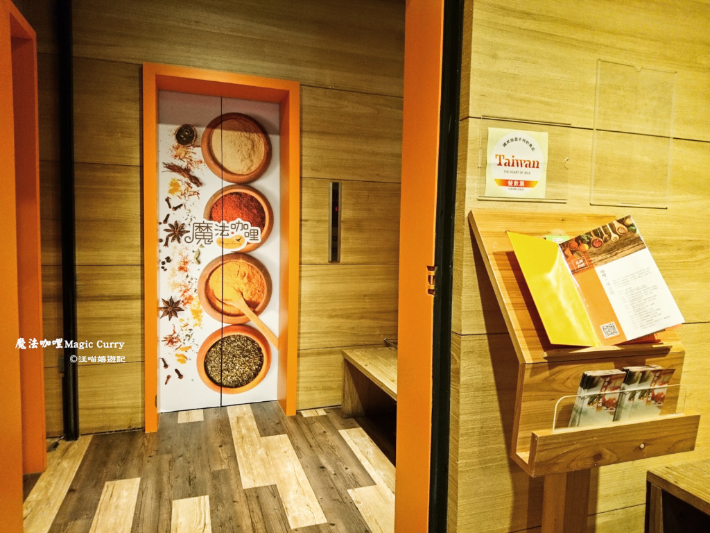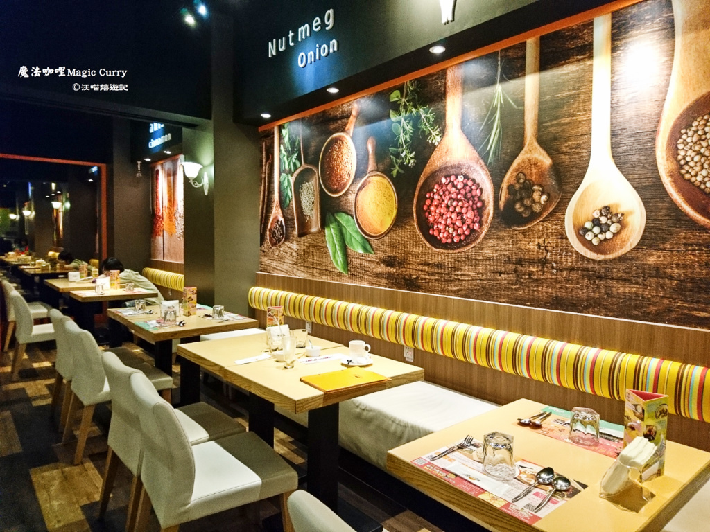 一進到魔法咖哩台北站前店可以看到以各種天然辛香料圖案所築起的香料牆,