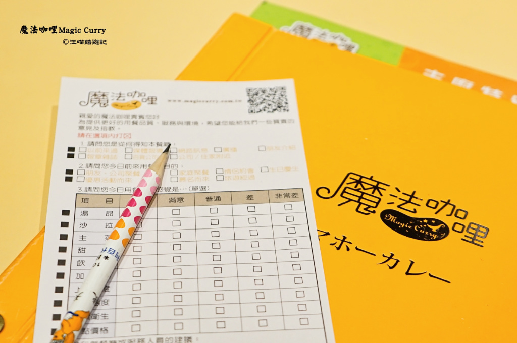 飯後的意見調查也足見魔法咖哩於自己餐點,服務及用餐環境的重視,