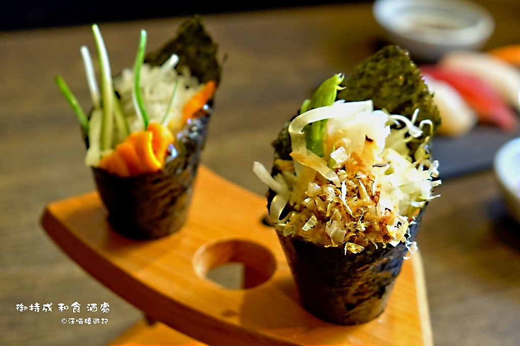 右邊的手卷為御持成.御膳套餐附的鮮蝦蘆筍手卷,