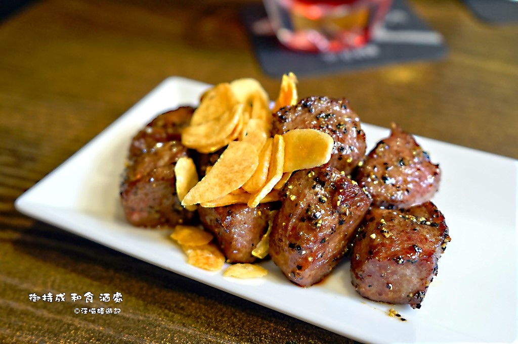 奶油與香酥蒜片,加上黑胡椒提味,讓鮮嫰多汁的骰子牛吃來格外美味!