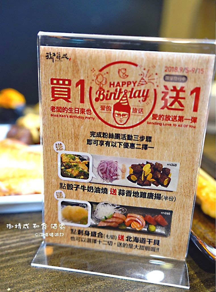 御持成和食酒處現在舉辦愛的放送活動(9/1~9/15),
