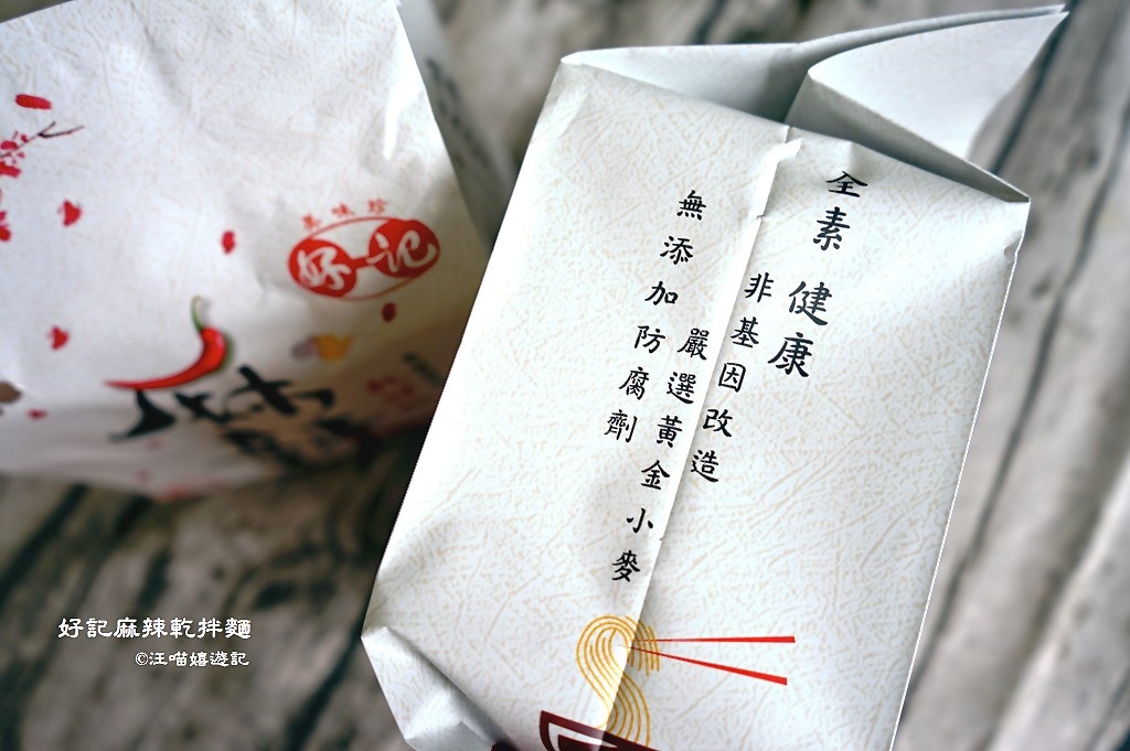 好記麻辣乾拌麵除了全素外,原料中嚴選非基改黃金小麥,不添加防腐劑,