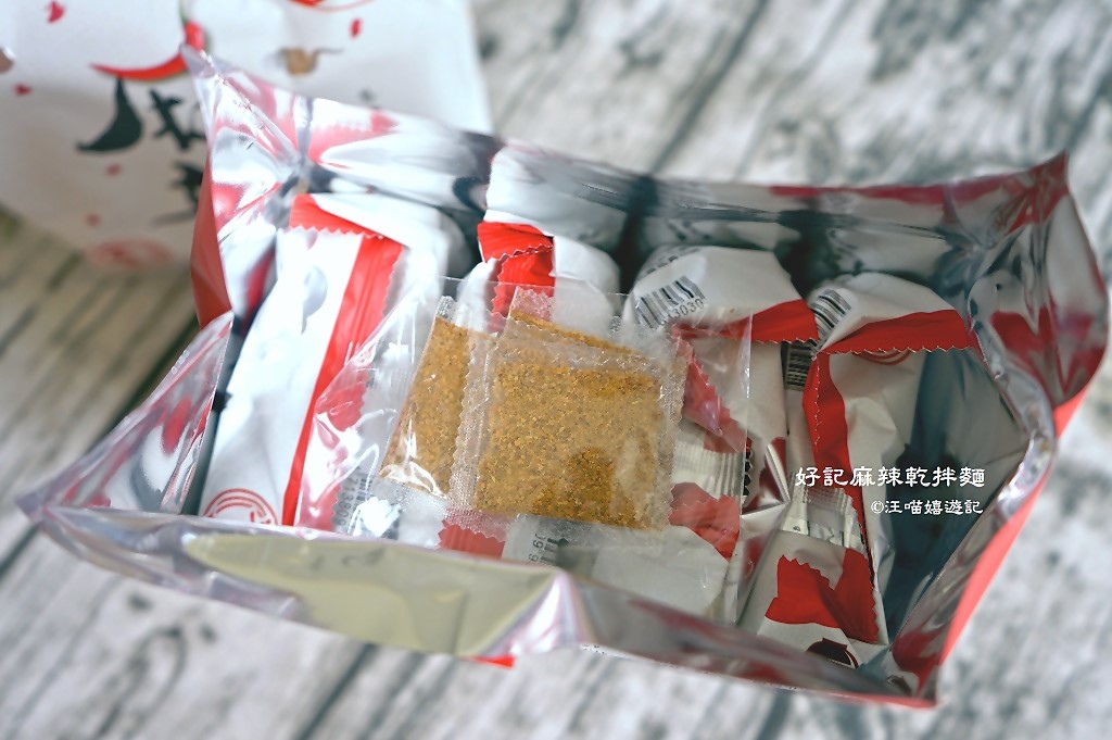 好記麻辣乾拌麵一包為四入裝,除了醬料包外,還有附獨門辣粉,