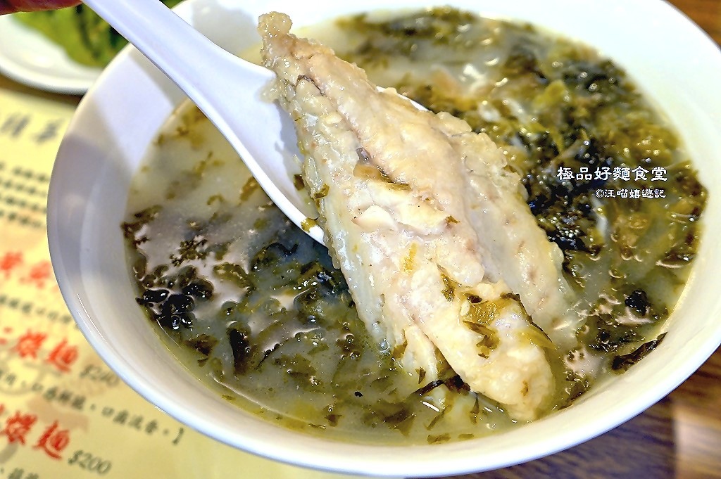 黃魚煨麵搭配的是酸脆的酸菜,提出黃魚的鮮味,