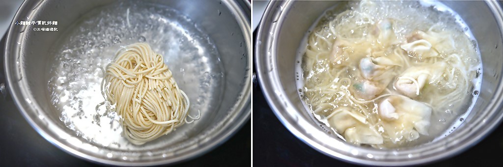 只要將麵條(不需退冰)跟扁食丟到滾水裡,