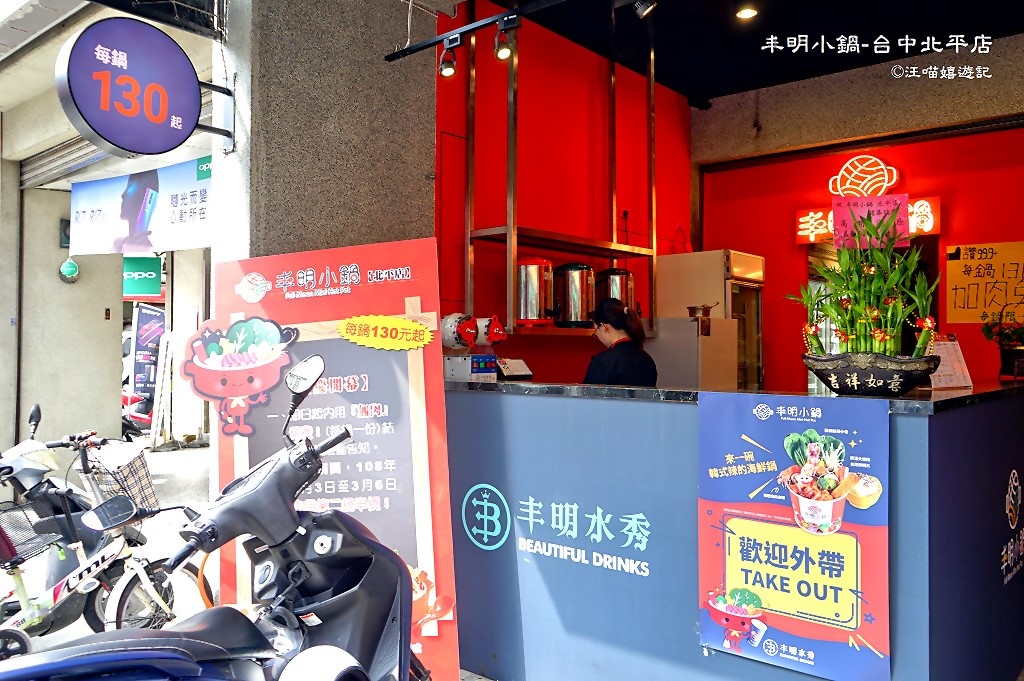 丰明小鍋門口處自有品牌丰明水秀也有兼賣手搖飲,