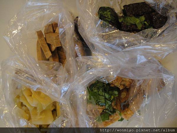 因為第一次購買,不曉得好不好吃,只簡單買了4樣:米血,豆干,豆皮跟脆腸
